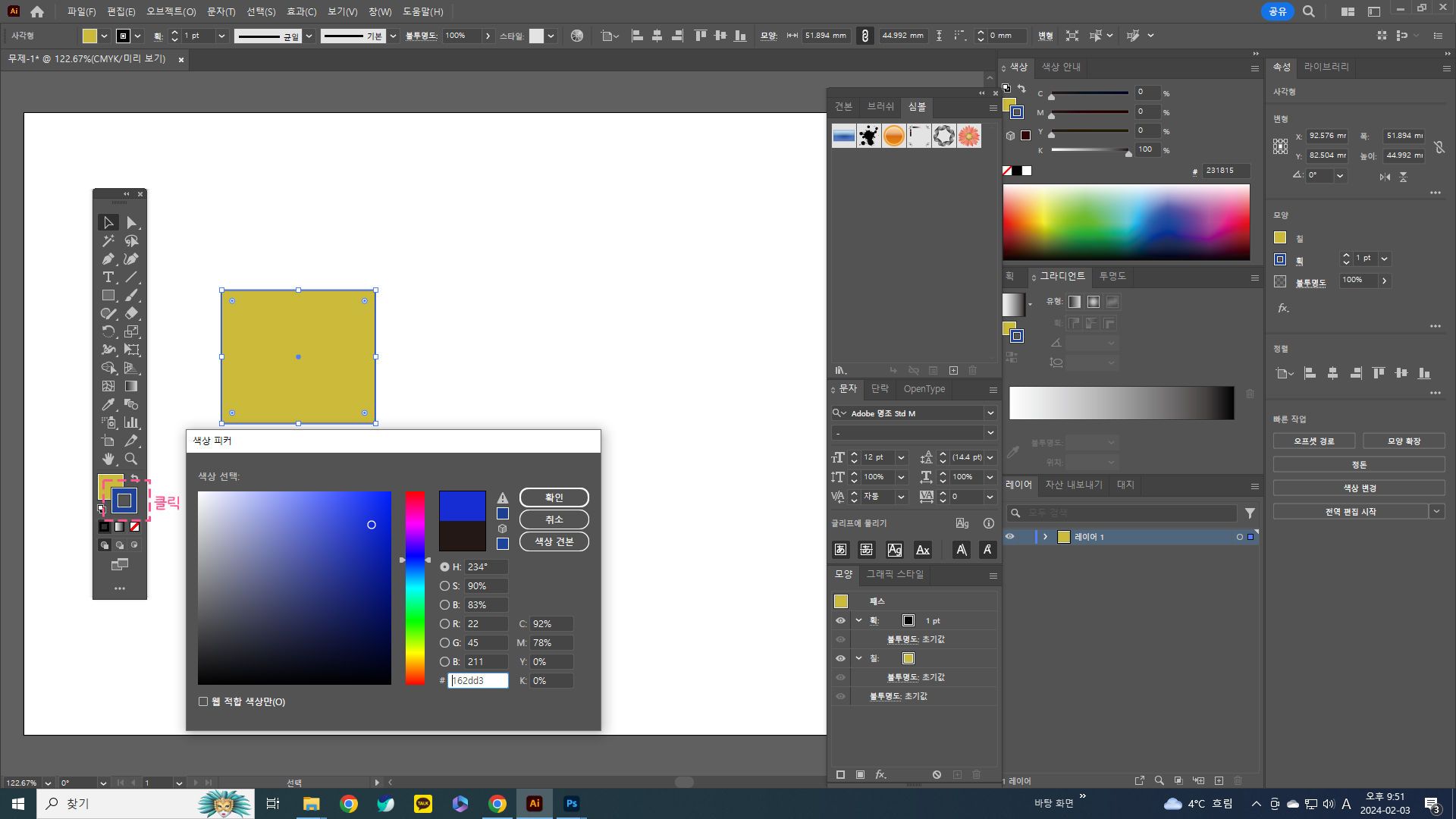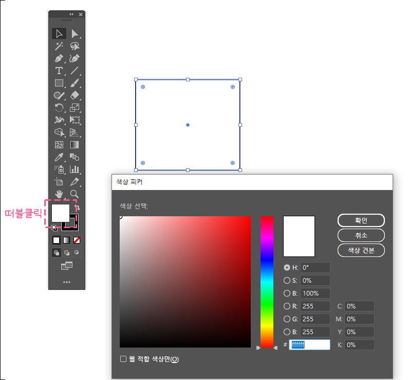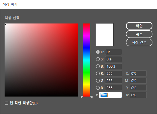 컬러바를 마우스 왼쪽 더블클릭하면 색상피커가 나오는데 색상을 설정할 수 있습니다